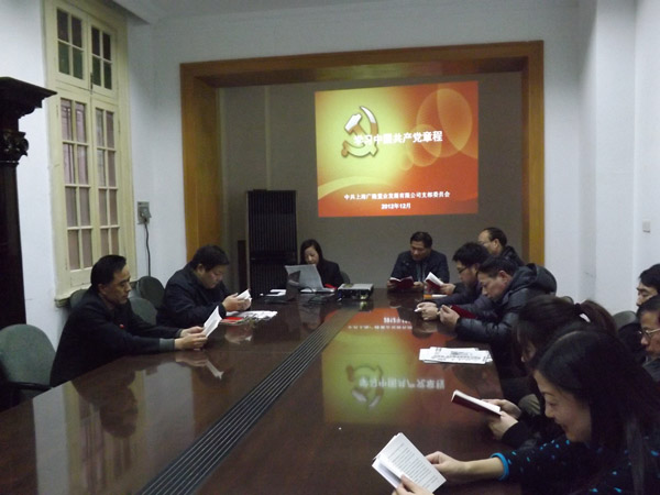 2012年12月18日,公司党支部召开全体党员会议,学习中国共产党章程,会议由党支部书记方卫主持。会上重点学习了中国共产党党章修订内容,并对党章的修订内容进行了解读与学习。