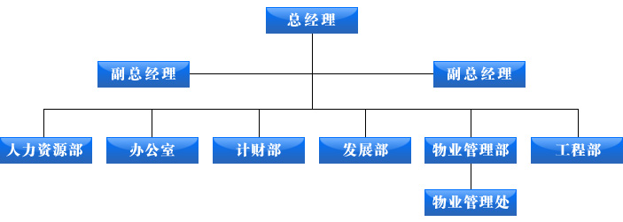 捷艾尔物业下设人力资源部、办公室、计财部、发展部、物业管理部、工程部, 公司实行条、块相结合的管理构架,即:各专业部门对下属管理部进行条线的指导、监督和检查,公司对下属管理部实行经营、管理、服务目标考核。